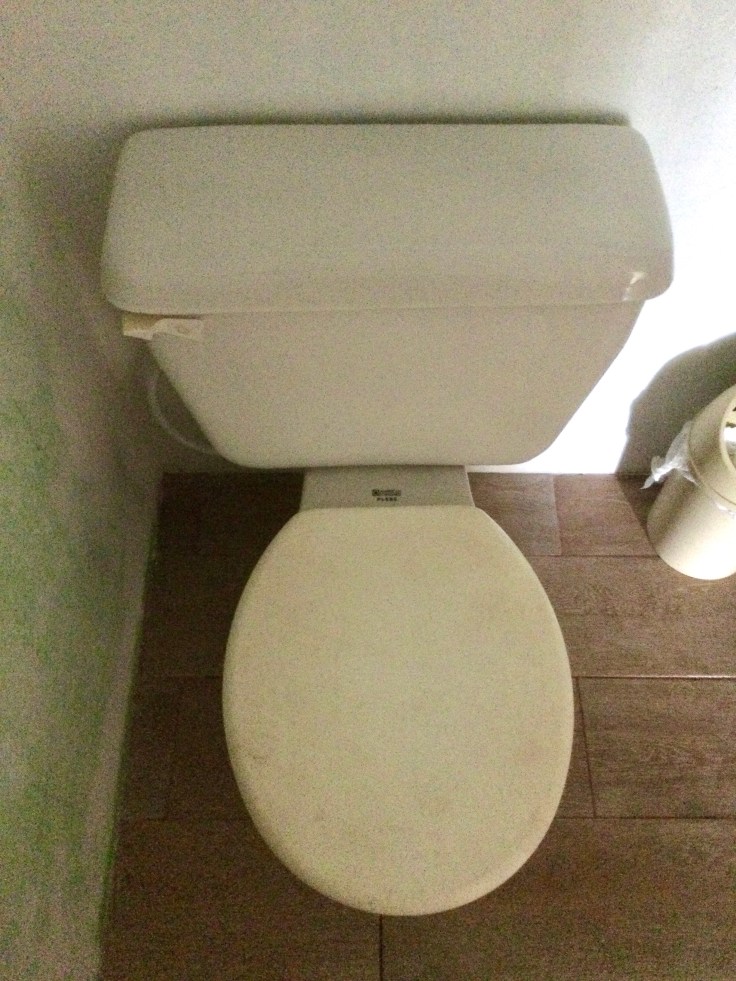 Well-water plus uratic salts caused massive mineral deposits that completely clog up the toilet from flushing over time, which is one of the reasons our friends were getting rid of their old toilet in the first place.